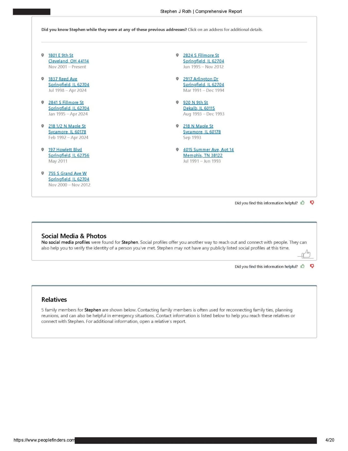 https://www.peoplefinders.com (Stephan Roth #63863575) website and the